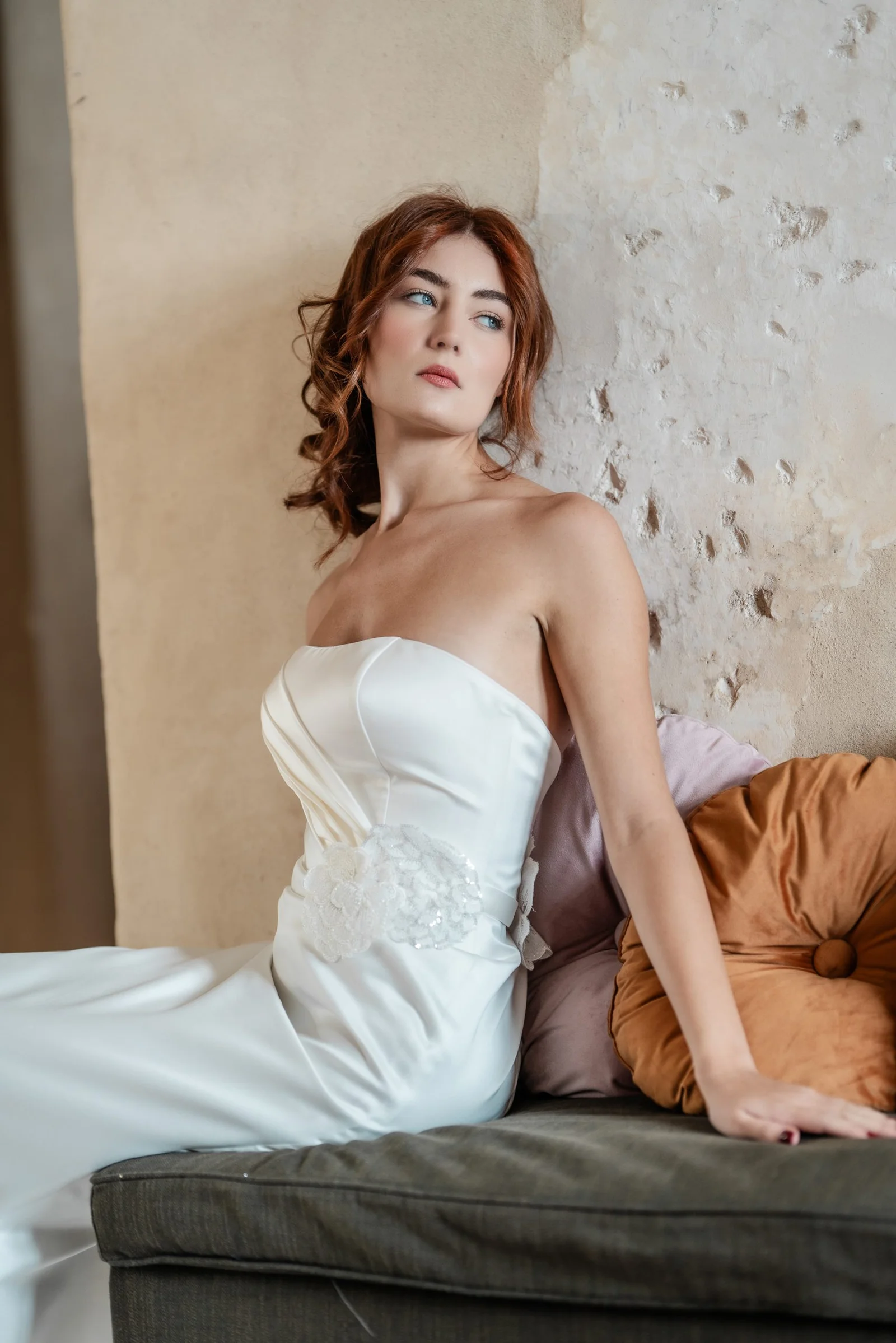 “Ogni creazione di Sara è realizzata su misura, per esaltare la bellezza e la femminilità di ognuna, e creata con pregiati tessuti, dalla seta al lino”