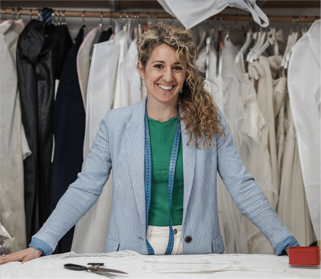 Mi chiamo Sara Radice, direttore creativo, stilista e sarta di abiti da sposa.
